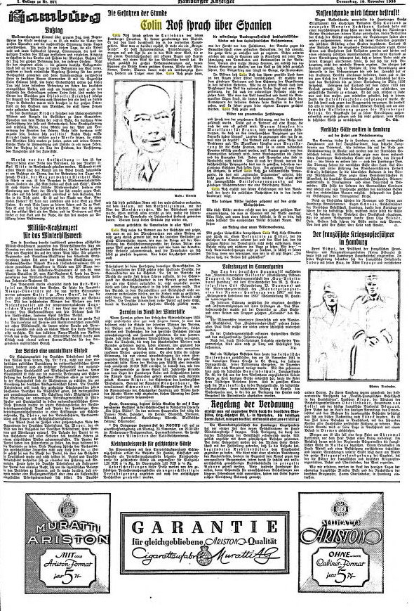 Anonymous. Colin Roß über Spanien. Hamburger Anzeiger: 1936 Nov 19; 49 (272); [3].