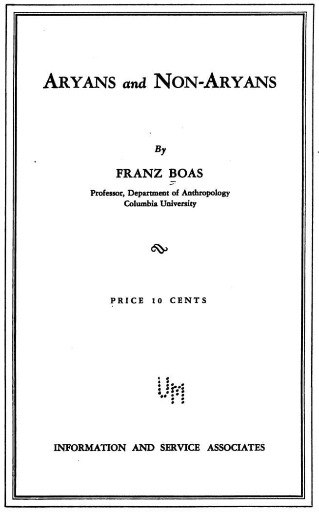 Franz Boas. Aryans and non-Aryans. The American Mercury: 1934 June 26; XXXII (1), https://babel.hathitrust.org/cgi/pt?id=mdp.39015009153886;view=1up;seq=3.