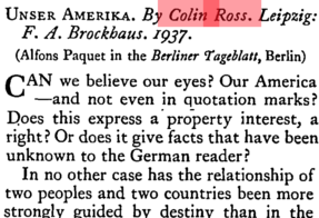 Ross’s rhetorical use of “Germany” is one of the clearest signals of his intention, expressed before he set off on the first of his American journeys in the 1930s, to write books that were not mere travel accounts. From the mid-1930s onwards, in his books about America, political reflections and propaganda—increasingly critical of the USA—overshadowed narratives of lived experience; Unser Amerika is the most extreme example of this trend. More generally, despite their many defects, in these books Ross managed to ostensibly write about one country while meaning another.
