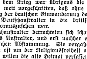 The first role is played primarily by the Lutheran Auslandsdeutsche communities in South Australia. They appear to Ross admirable, if out of touch with the present, in their abiding devoutness and bitter sectarian fights with kindred Protestant beliefs (see: Infighting among Lutherans in Australia). He even describes city-dwelling, first-generation Auslandsdeutsche’s attachment to a Germany of the past, rather than the present-day country he comes from and writes for (see: The homesickness of the emigré).